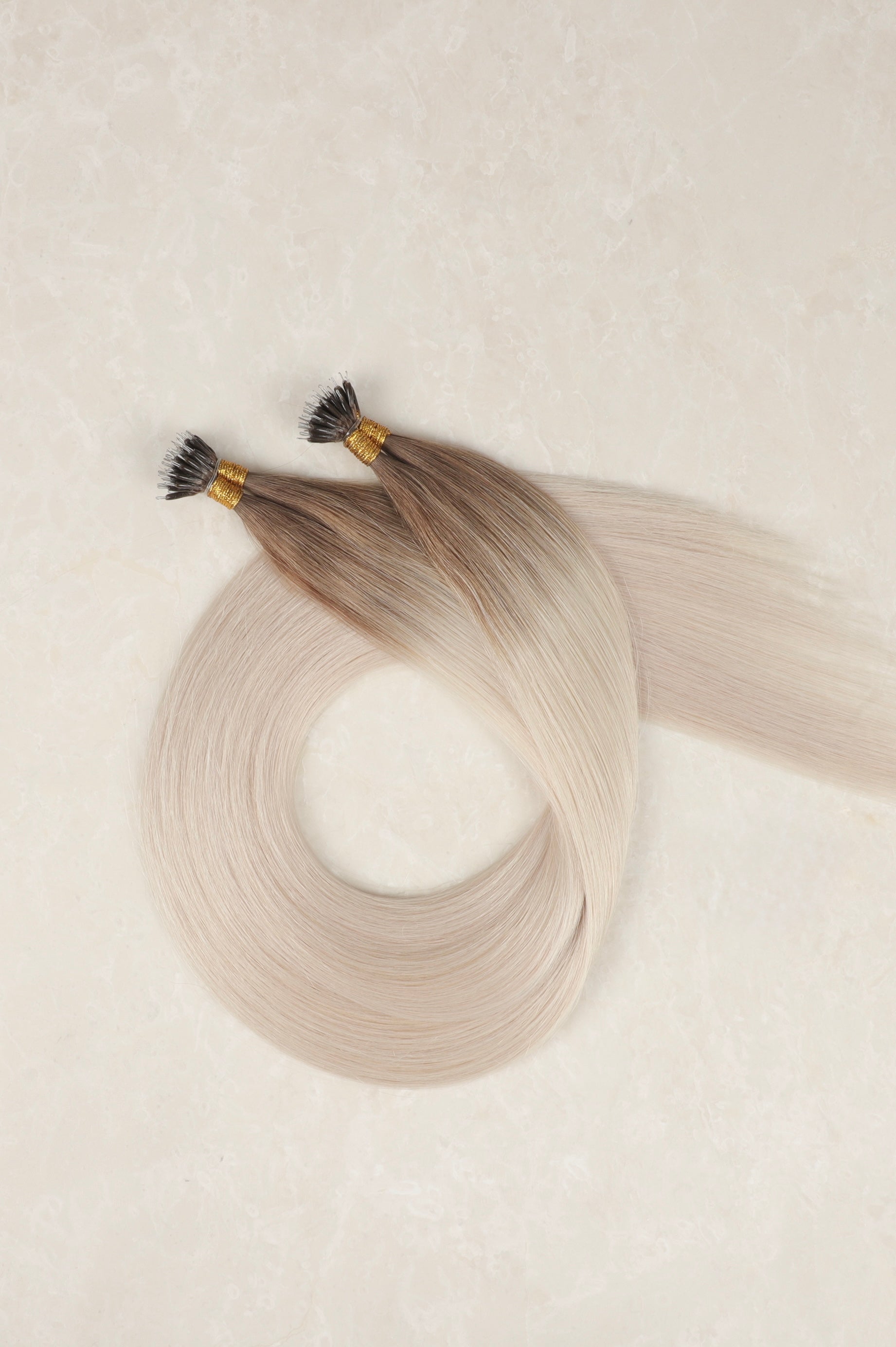 30" Nano Tip Human Hair Extensions. Rooted White Blonde #T18/1004