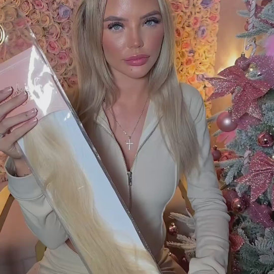 Discover Luxe by SHE Flat weft human hair extensions for natural-looking length and volume. Made from 100% double-drawn European human hair which is the finest hair available in the world. These pu Flat wefts offer a slightly deeper band to help with a secure application, lieing flat to the scalp for a natural feel. Lightweight, comfortable, and easy to install, they offer a luxurious salon-quality look. Available in multiple lengths and shades, they're reusable and heat-styling compatible for long-lasting beauty.